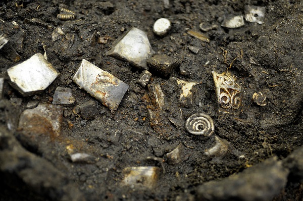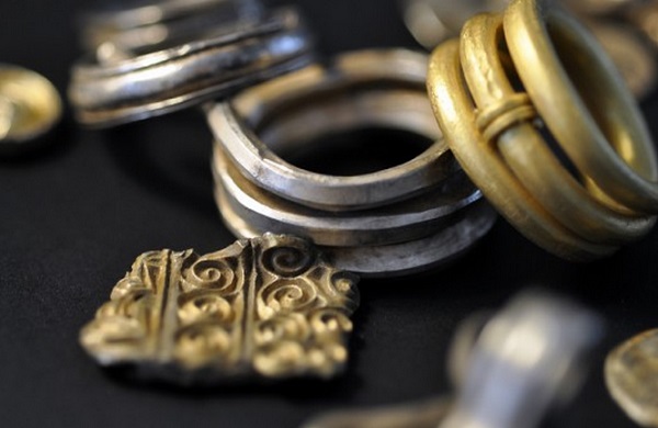 Silfurskartgripir smíðaðir í Skandinavíu, rómversk drykkjarker úr silfri, slegnir rómverskir silfurpeningar og stangir og gull sem klippt hefur verið niður er meðal þess sem fundist hefur. Fornleifafræðingar segja að sjóðurinn hafi verið grafinn í jörðu um 490 eftir Krist.