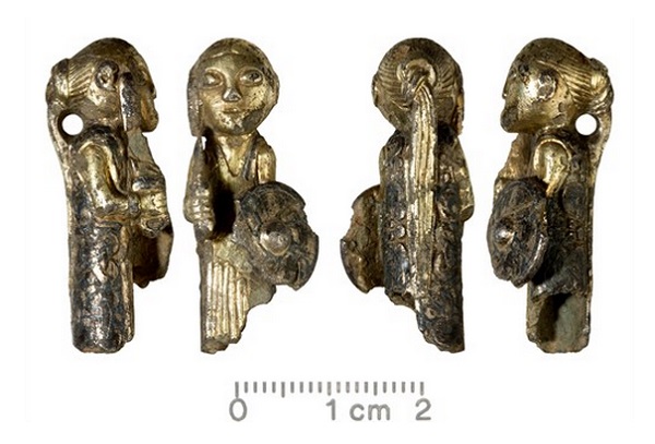 Þessi fagri gripur, sem hér sést frá öllum hliðum, fannst á Hårby á Fjóni. Vitanleg, eins og alltaf, voru það menn með málmleitartæki sem fundu þessa litlu styttu. Slík tæki má ekki nota á Íslandi til að leita að fornleifum og það er ekki hægt að undirstrika það of mikið. Ég ætla ekki að upplýsa meira um gripinn, en hér er hægt að lesa frekar.